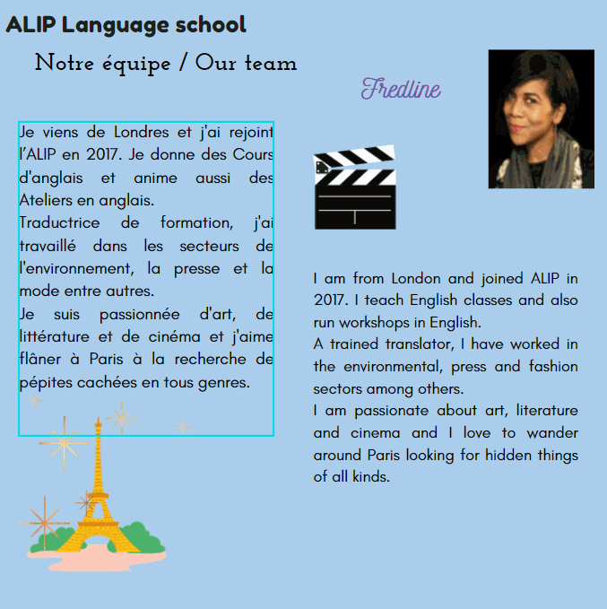 On vous présente une partie de nos membres. Venez à leur rencontre, dans nos cours de français ou nos cours d’anglais