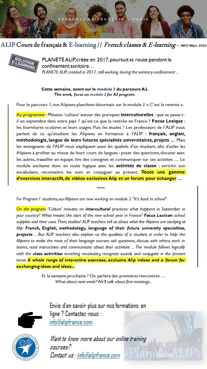Nos parcours s’enrichissent et répondent maintenant aux besoins de tous ! Contactez-nous : info@alipfrance.com