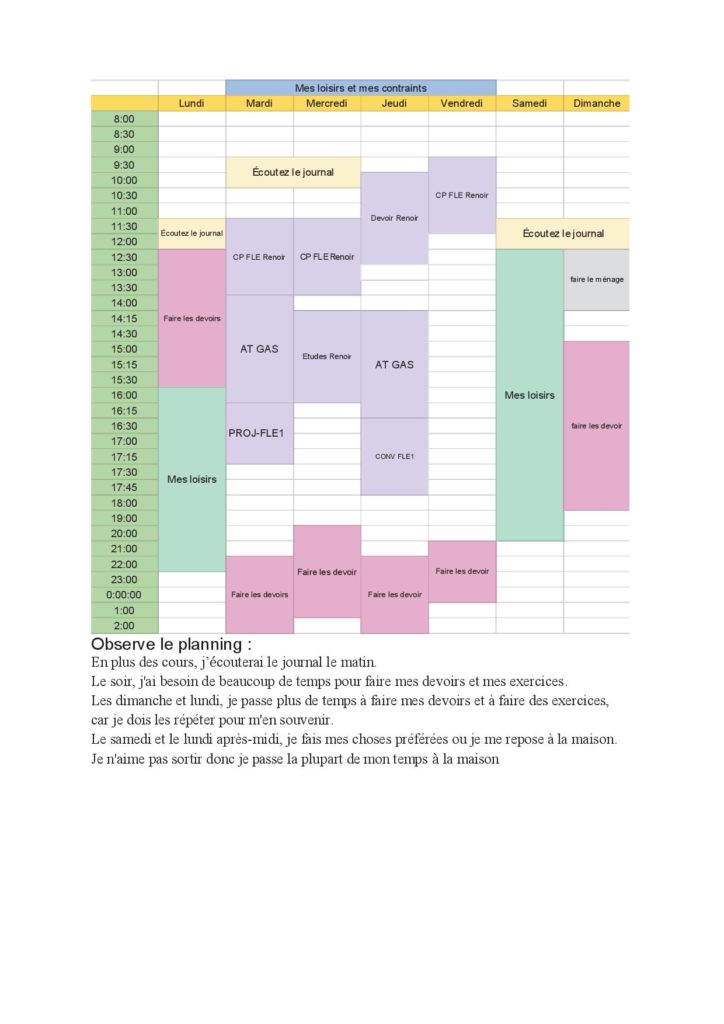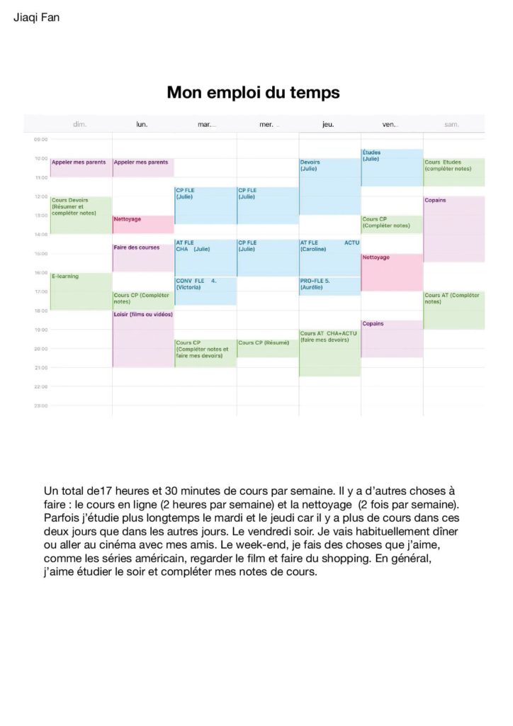 Aujourd’hui, focus sur le travail en cours de français de 3 Alipiens qui nous parlent de leur emploi du temps hebdomadaire. En plus de leurs cours de français et d’anglais à l’ALIP, découvrez leur manière de gérer travail et loisirs durant leur séjour à l’ALIP à Paris.