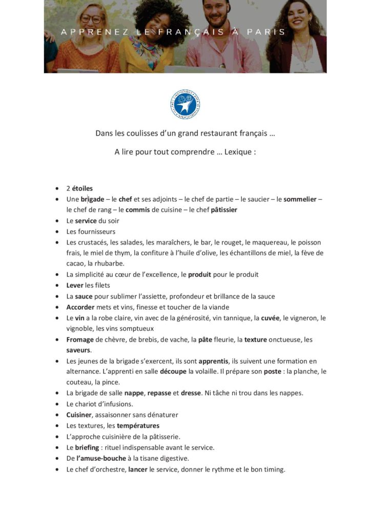 Comme nos étudiants ALIP, vous vous intéressez à la cuisine française et vous voulez tout savoir sur la brigade, les produits, le dressage des tables d’exception etc.